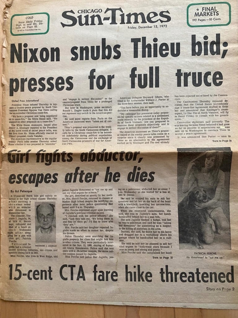 I was kidnapped on Chicago’s North side on this December evening, 53 years ago, today.