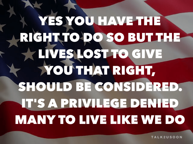 Land of the FREE because of the BRAVE 🇺🇸 Posted on September 25, 2017 by Talk2USoon™ Share this:Share Click to share on X (Opens in new window) X Click to share on Pinterest (Opens in new window) Pinterest Like Loading...