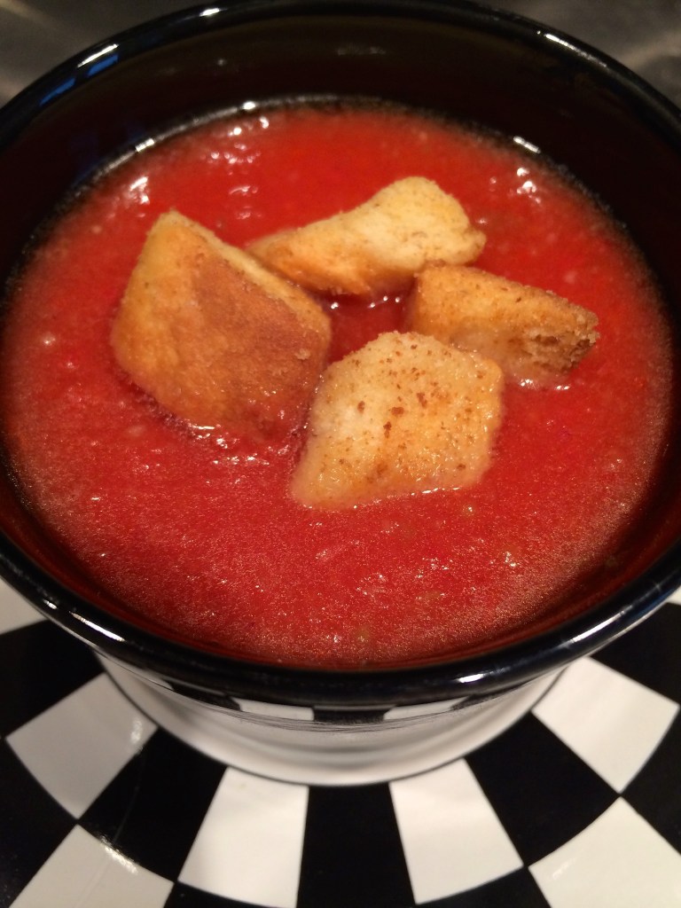 Serve hot with Grilled Cheese Croutons scattered on top.